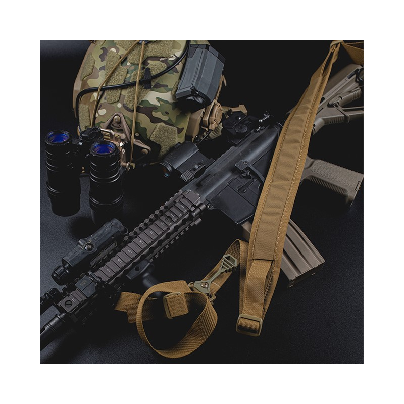 The FARAON sling was created as the most modular rifle sling on the market. Its quick-adjust rubberized pull tab allows for a rapid transition of the weapon from a secure position to combat readiness.