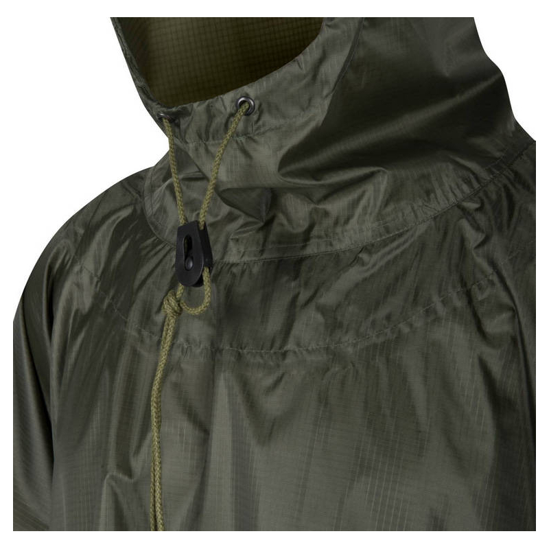 Waterproof and quick-drying poncho made of durable rip-stop polyester.