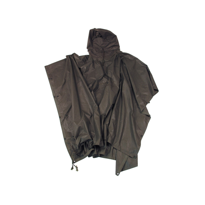 Standard Bundeswehr army poncho - used side snap buttons the regions is equipped with eyelets so it can serve as an emergency tent (or Cover) hood with drawstring and stopper highly adjustable collar color: olive (green) material: 100% polyamide coated polyurethane dimensions: 225 x 160 cm