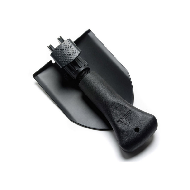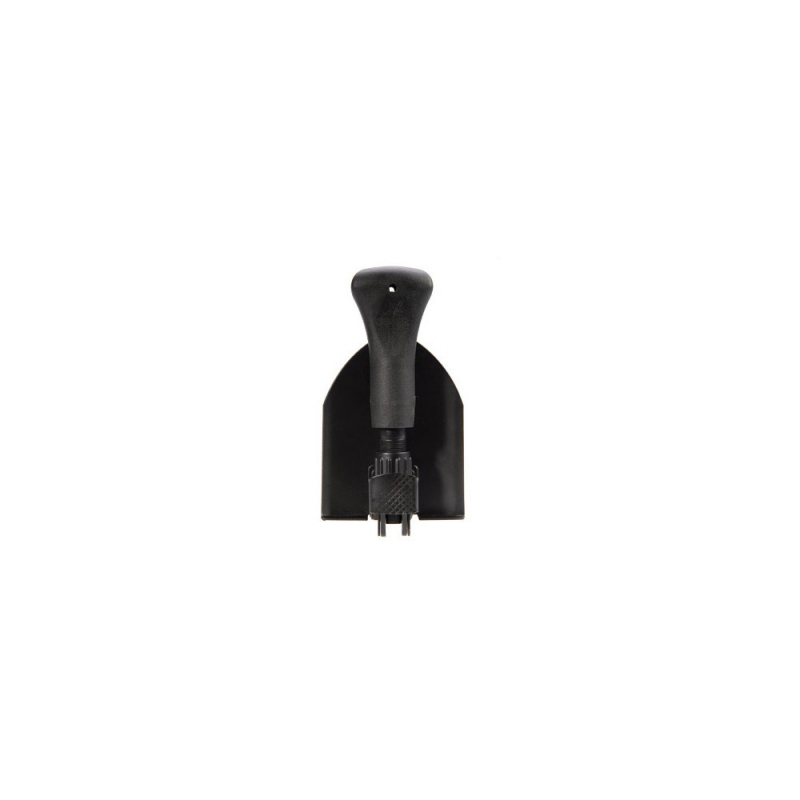 This lighweight, foldable shovel is ideal to bring along on back-country trips. A glass-filled nylon shaft and rubberized handle secure the grip for digging or hammering. Use as a spade or fold back to reveal a hammer for pounding, easily fold away with the push of a button.