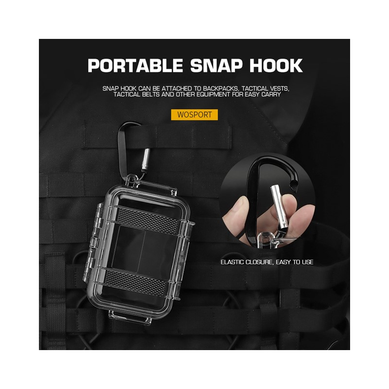 Small, closable transport box for smaller equipment and accessories. Thanks to the carabiner, the box can be easily attached to a backpack or vest. Silicone padding on the inside ensures that your gear is safe.