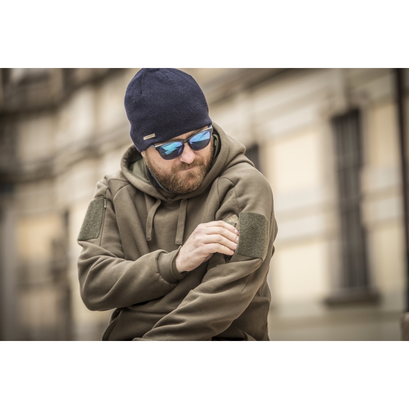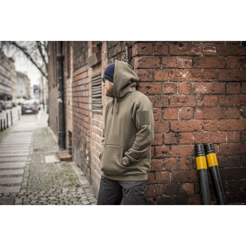 Comfortable hoodie designed for everyday wear. Thanks to the elastic material, it does not restrict movement. For storing small gear and valuables, the hoodie features several pockets. The largest, known as the "kangaroo" pocket, is located at the bottom of the hoodie and contains two smaller compartments inside.