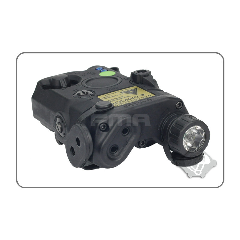 AN/PEQ15 by FMA offers functional IR covers for both the flashlight and laser, making it ideal for use with night vision devices and other systems sensitive to infrared spectrum. A stronger visible laser is available for faster firing from the hip. For improved visibility with NVG devices, an IR illuminator is also included. The laser is adjustable in both directions, allowing precise aiming.