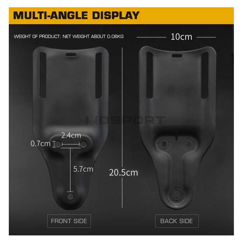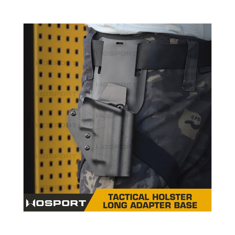 The Low Rise Belt Platform for Holster by WoSport serves to change the placement of the pistol holster on your gear, making it more accessible for drawing. When using a tactical holster (such as GB-35) with this Low Rise platform, the weapon is further from the body and lowered approximately 50 mm from the top edge of the belt to the slide face of the pistol. Thus, when drawing, you won't snag on clothing or a vest.