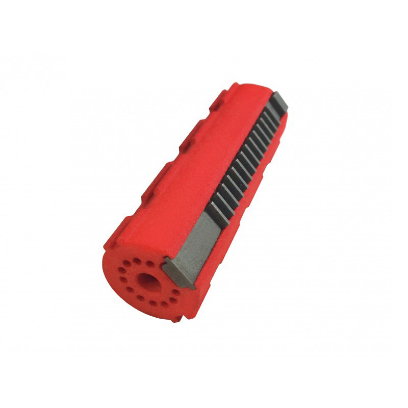 The piston contain of a very durable plastic body and a full metal teeth (14 pcs). The second tooth is remove to decrease the chance of pre-engagement by the sector gear.