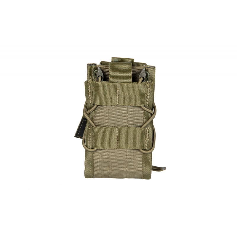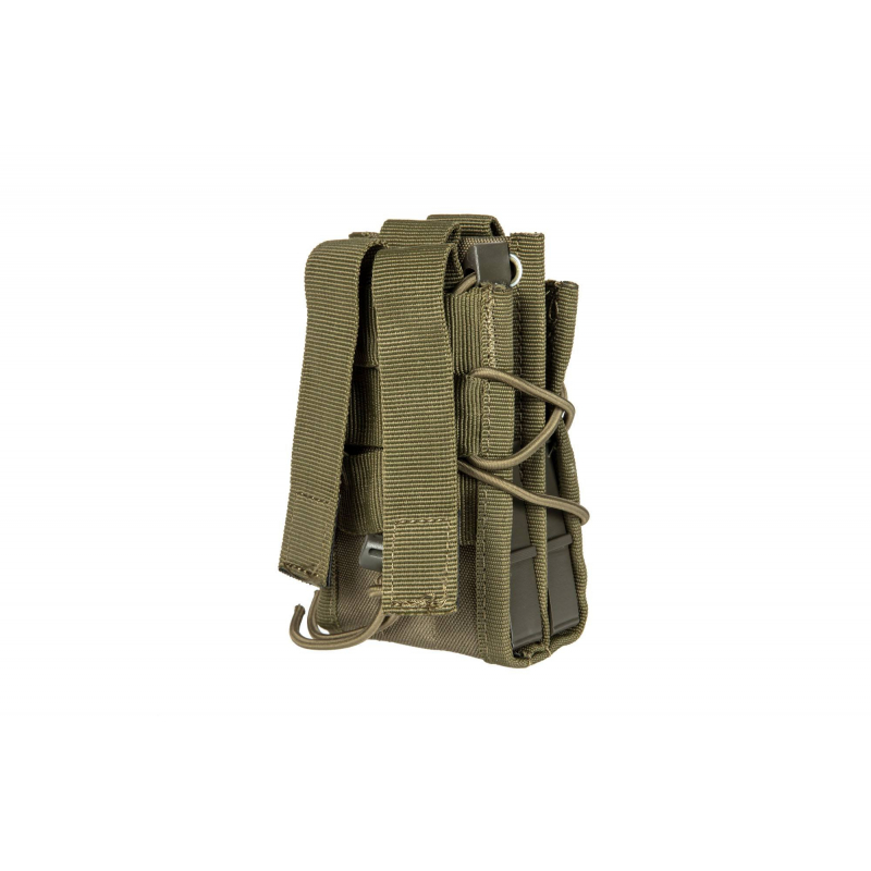 A single, open, single-type pouch, made of durable nylon. The pouch holds two M4 / M16 (STANAG) or AK magazines. The pouch comes with a stiffening polymer insert, which additionally stabilizes the magazines inside.