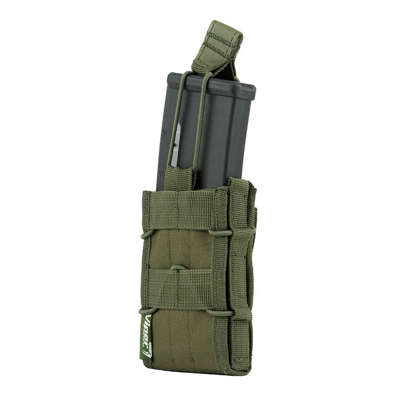 MOLLE attachments, adjustable bungee retention, fits a variety of mag sizes, open top quick release. Material: 600D Cordura. Dimensions(cm): 12 x 8 x 3.