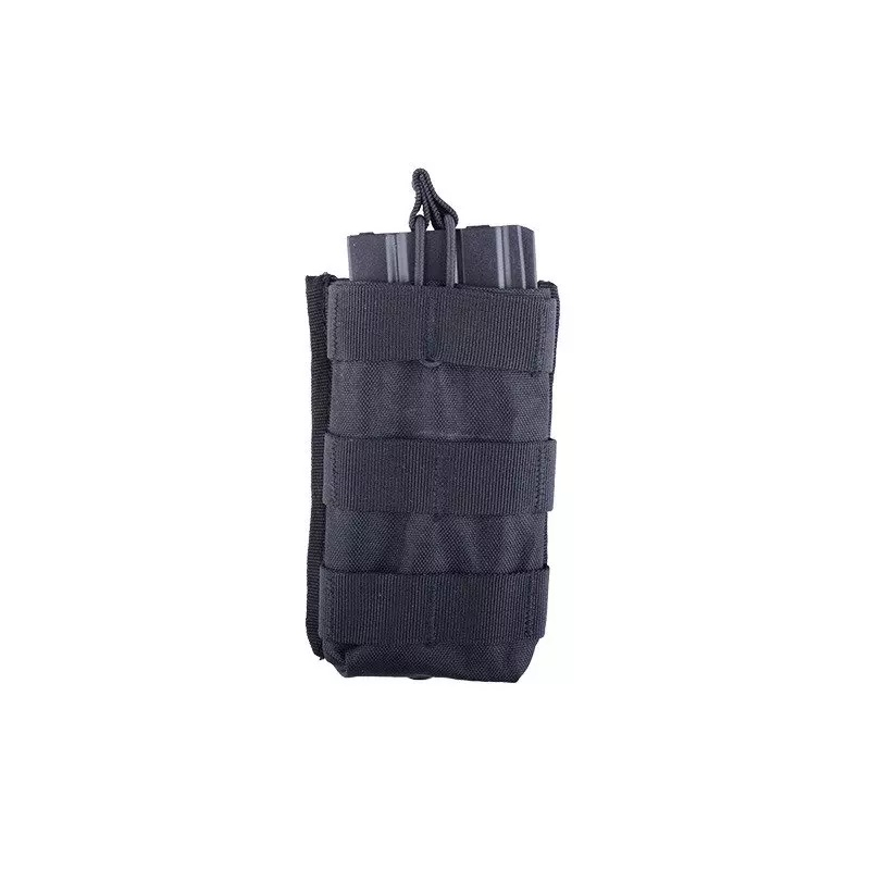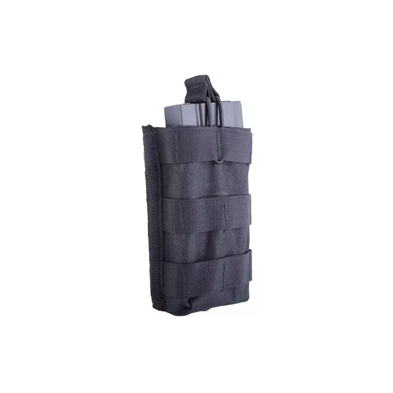 The pouch stores a single M4/M16 (STANAG) / AK / G36 magazine. The magazine is secured against falling out from the top by an elastic shock-cord. The pouch is compatible with MOLLE webbing system, which means it can be attached to all kinds of vests, belts and backpacks.