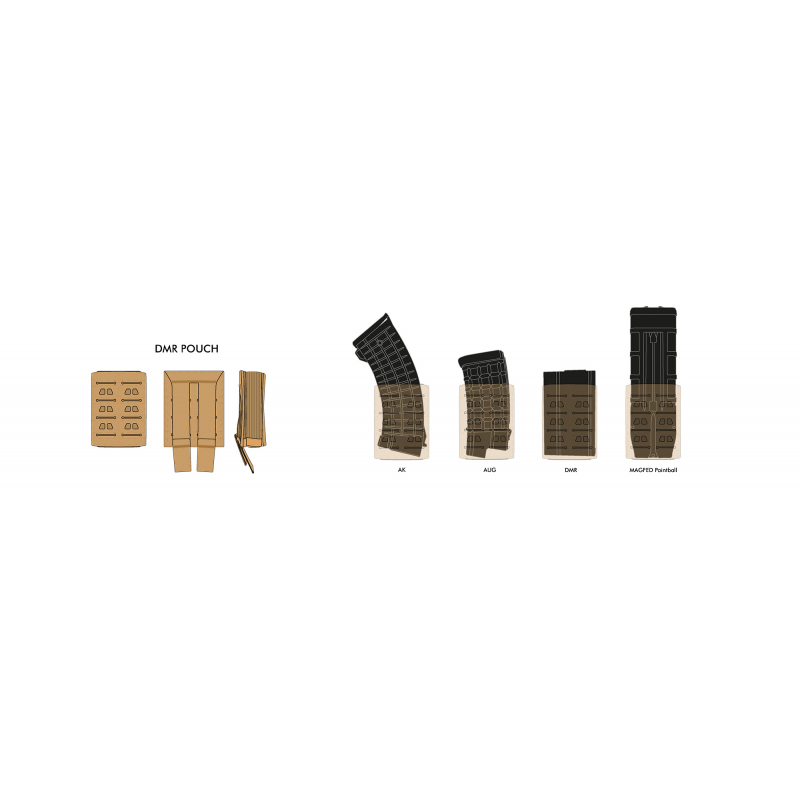 Looking for a well-thought-out pouch for your DMR magazines? Want reliable retention while still enjoying fast reloads thanks to a plastic insert? Need the ability to stack pouches? Do you own AK, AUG, or M4 rifles and want just one type of pouch for them all? The Novritsch DMR rifle magazine pouch fits one 7.62 magazine. It is compatible with models like the SR-25, M14, SCAR-H as well as AK and AUG. The Laser-Cut MOLLE webbing allows you to stack additional pouches, which is ideal for organizing your loadout. Elastic sides ensure a firm grip on the magazine, while the internal plastic insert keeps the pouch open even when empty, making reloads faster. Made from durable 1000D nylon, it is ready for the harshest battlefield conditions. Not suitable for HK417 or G28 magazines.