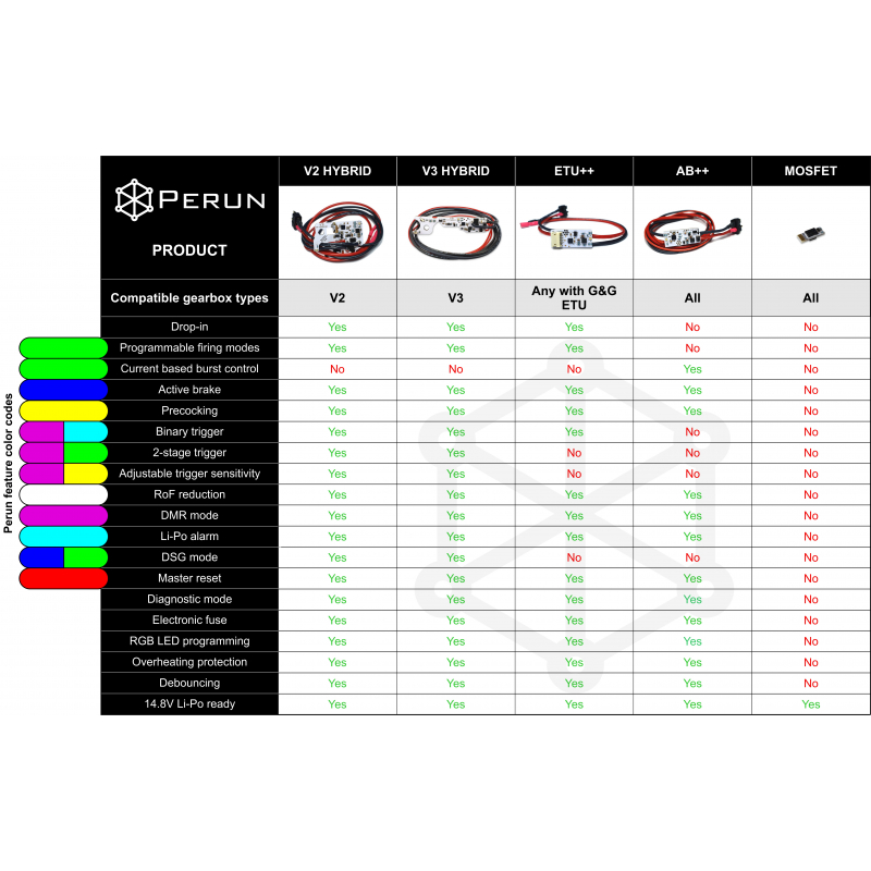 AB++ is an on-wire MOSFET with a specialized high-power transistor that transfers power from the battery directly to the motor instead of fragile mechanical switches. That greatly extends the service life and lowers overall resistance resulting in a more reliable replica with a higher rate of fire which you can shoot longer without changing the battery. It also gives the replica many additional features which give the possibility to choose an optimal configuration to the requirements of the mission and gain an advantage over the opponent.