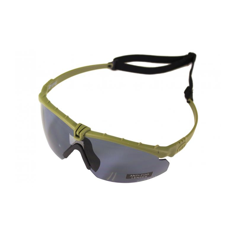 BATTLE PRO'S Tactical Shooting Glasses by NUPROL in green frame with smoked lenses.