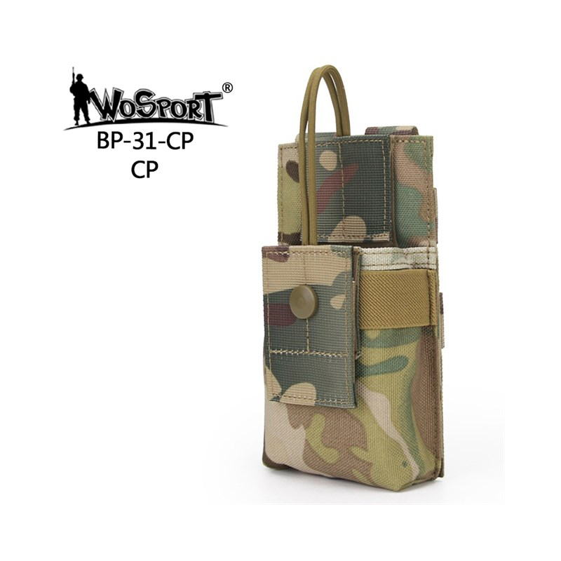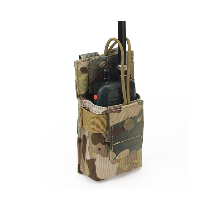 Radio bag with Molle binding on the back, featuring waterproof treatment, quality materials and light weight. The walkie-talkie is held in place by an adjustable paracord with Velcro closure. The material of which the pouch is made will not tear easily and has several colour options.