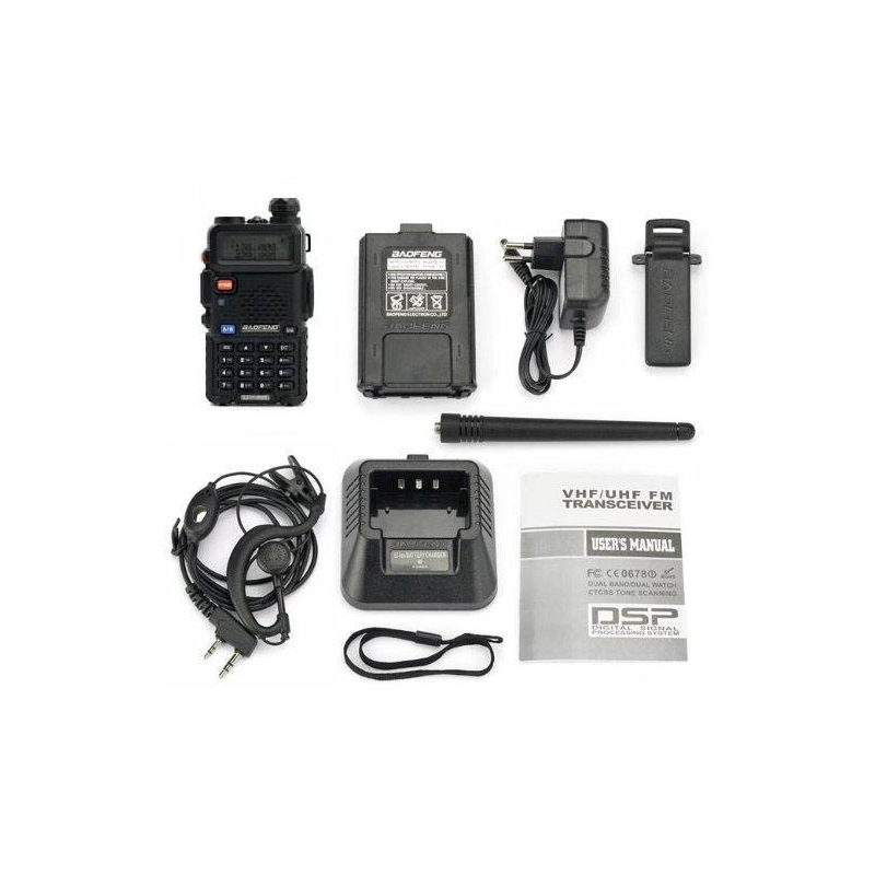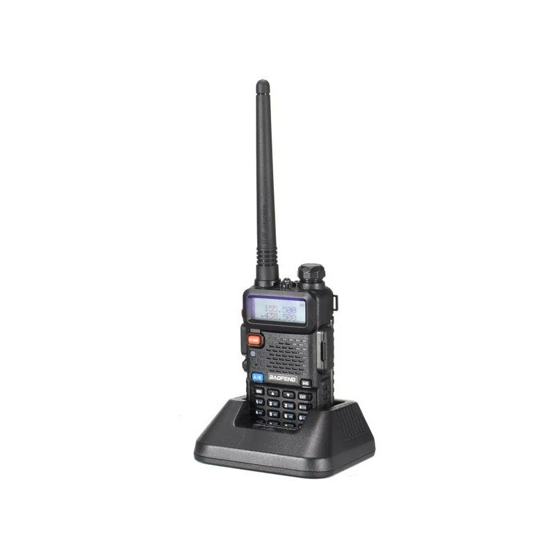 The Baofeng UV-5R is a compact dual-band radio operating in the VHF and UHF bands. It can easily tune into shared frequencies in both bands, marine frequencies, repeaters, PMR channels, and more. This radio is compatible with headsets and PTT buttons with a Kenwood 2-pin connector.