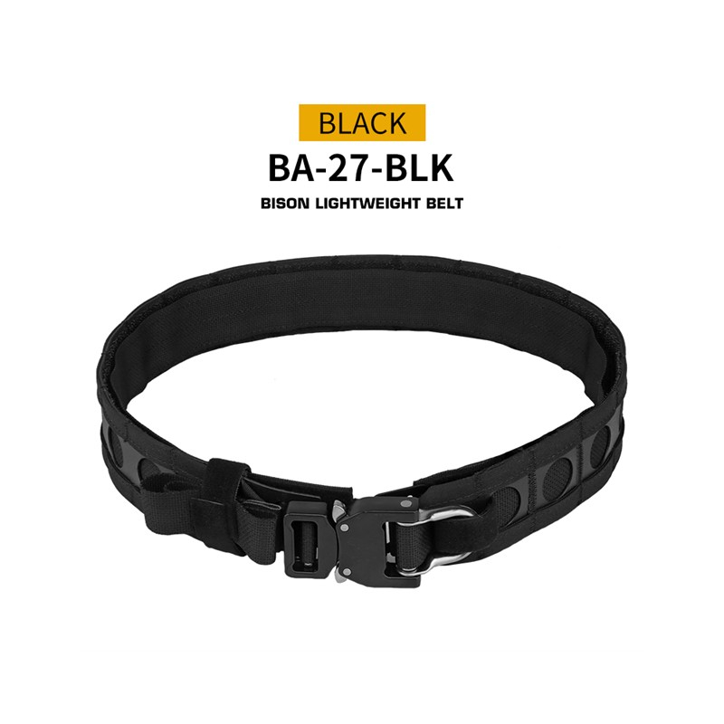 The BISON shooting belt is a dual tactical belt that is very lightweight. It is designed especially for carrying pistol and magazine pouches etc. This belt is made of nylon webbing and material with a nylon weave and an internal plastic skeleton for a stronger construction. A second inner trouser belt with a G-hook fitted on the outside with a fine section of Velcro which is used to secure the outer belt firmly to the trousers.