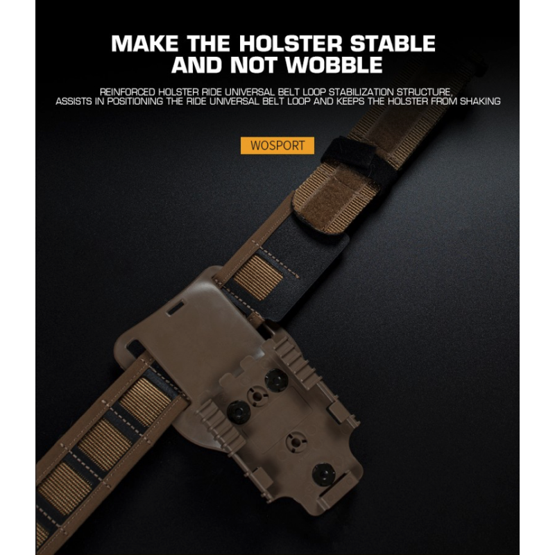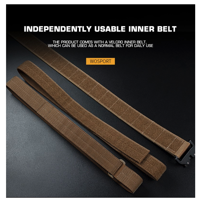 The third - tactical - outer belt is mainly for carrying pistol and magazine pouches etc. This belt is made of nylon webbing with a nylon molle weave. This tactical outer double layer allows the shooter to attach a wide variety of MOLLE compatible holsters and pouches.