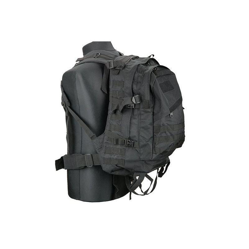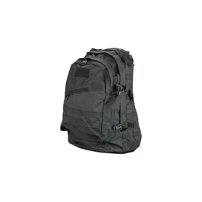 Practical backpack for equipment made of 600D Nylon. It is a classic stitched binding Molle around the perimeter. When motion may insure his position detachable chest strap and an adjustable waist belt. Internal back pocket is intended for hydration pouch and tubing then passes through the hole in the top of the pack. The side straps with Fastex buckle allow attachment of other accessories. The shoulder straps are padded and adjustable. Backpack is ideal for outdoor activities and airsoft.