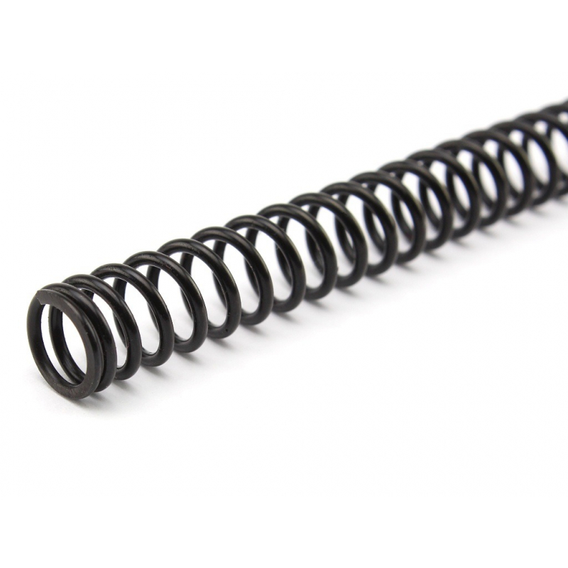 Spring for airsoft sniper rifles. It is made of spring steel with proper heat treatment and gives the final output of about 150 m/s (500 FPS). The spring has an inner diameter of about 7.5 mm and an outer diameter of 10.2 mm. The length is 251mm. It is therefore dimensionally suitable for most plastic basic piston