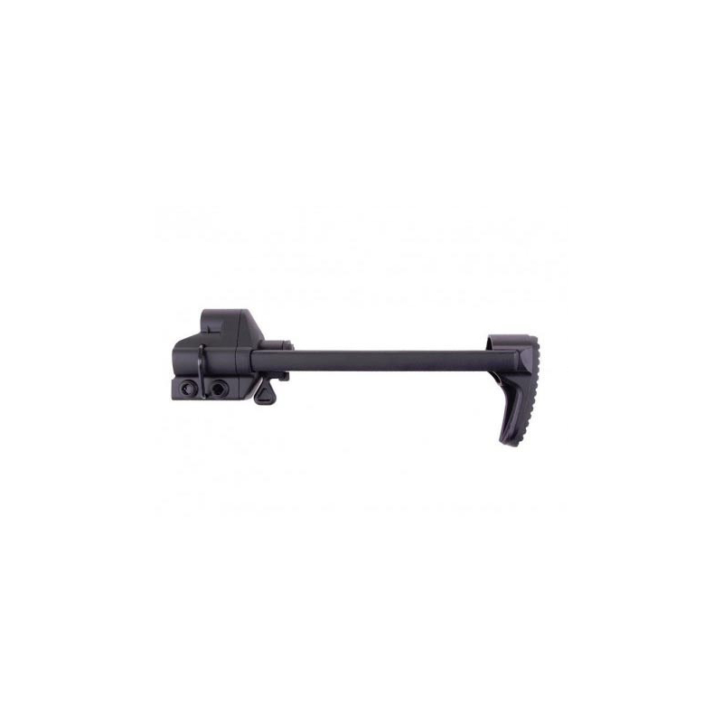 Retractable G3 stock for elekctric guns. The base to be attached to the body is made of plastic, the slides are metal, the locking lever and the foot is metal. The stock back plate is made of rubber. Original part by JG.