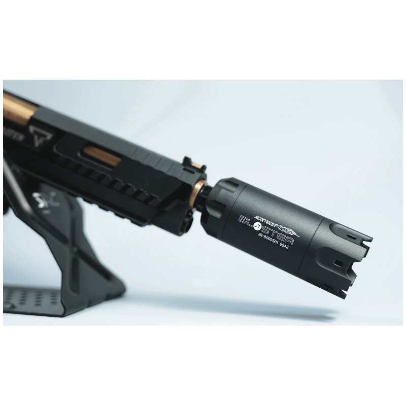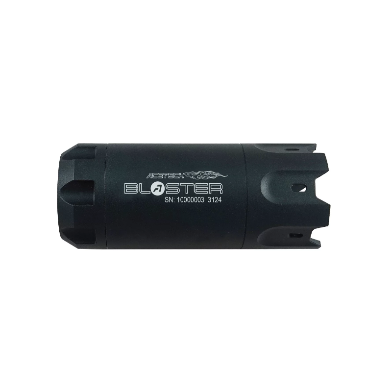 BLASTER Tracer Suppressor with Flame Effect from AceTech in black.