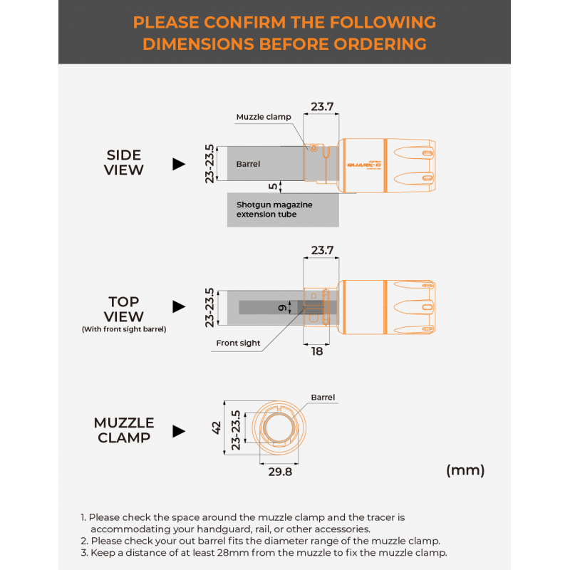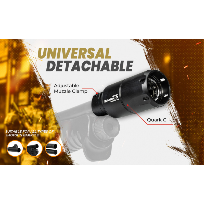 Do you want your airsoft shotgun to fire with a real muzzle flash like authentic firearms, so you can see your hits clearly in dark CQB arenas and intimidate your opponents? Love shotguns and tracer suppressors? Think they don’t go together? Wrong – we have the solution. The AceTech QUARK C suppressor with a BLASTER tracer unit combines BB illumination with realistic flame imitation and is designed specifically for shotguns, both single-shot and 3/6-shot models.
