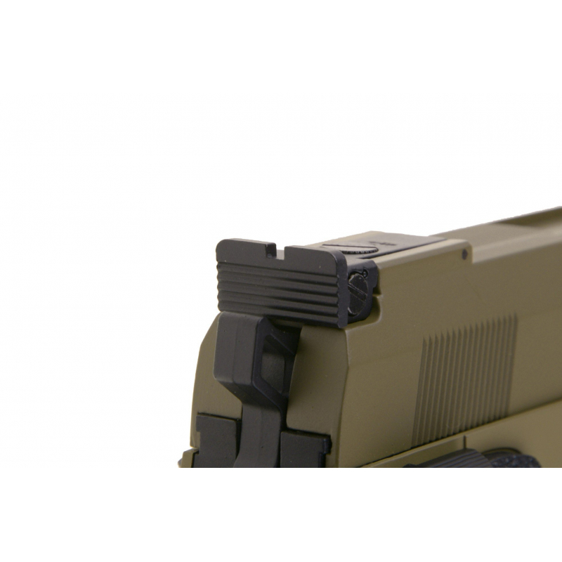 Airsoftová elektrická pistole CM.128 je další replika vyrobena světoznámou firmou CYMA. Zbraň má možnost střelby jednotlivě i dávkou, což lze přepínat pomocí levé části pojistky, pravá část slouží jako pojistka. Celá horní část, tedy kryt závěru je nepohyblivý a je vyrobený z kovu.