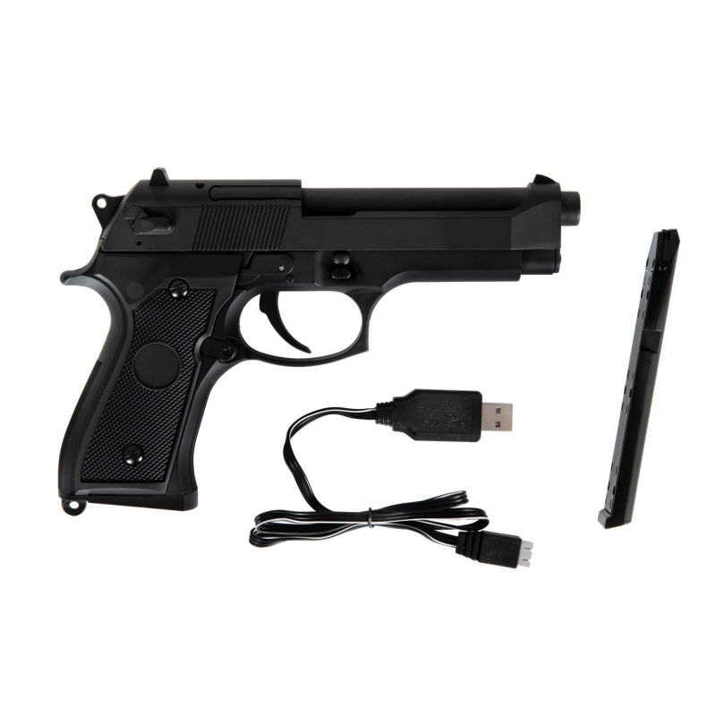 Upgrade verze oblíbené elektrické pistole CM126. Tato UPG verze má narozdíl od klasické verze navíc MOSFET a místo klasické NiMh baterie a nabíječky je UPG balení dodávané s Li-Pol baterií a Micro USB kabelelem pro nabíjení baterie. Dále je mechabox již osazen ocelovými ložisky.