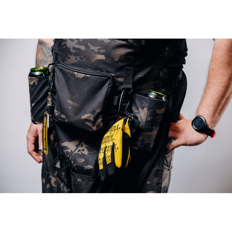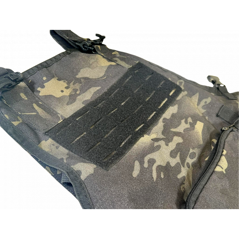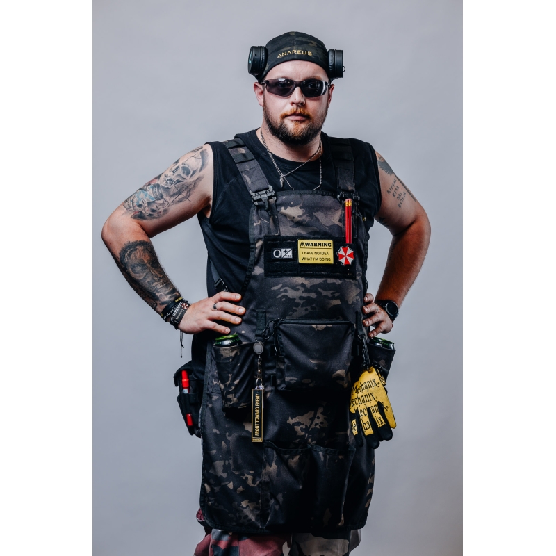 Táto zástera z odolnej látky Cordura je vybavená laserom rezaným molle panelom na hrudi, ktorý umožňuje pripojenie vreckovín pre grilovacie vybavenie a taktiež umožňuje pripnutie nášiviek na ňom vďaka suchému zipsu (velcro).