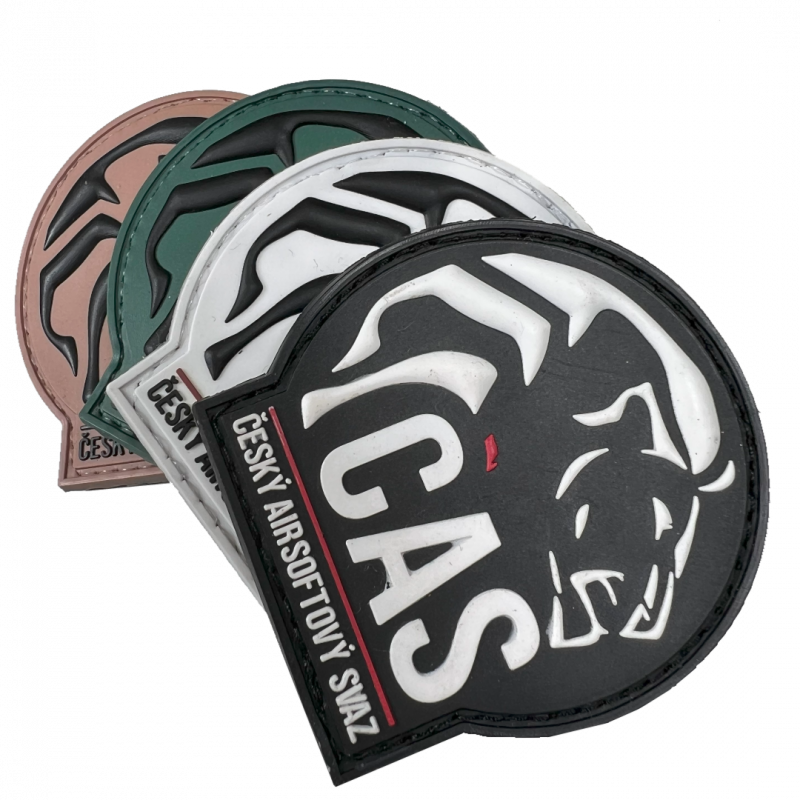 S logom organizácie Český Airsoftový Zväz (ČAS) v zeleno-čiernom prevedení.