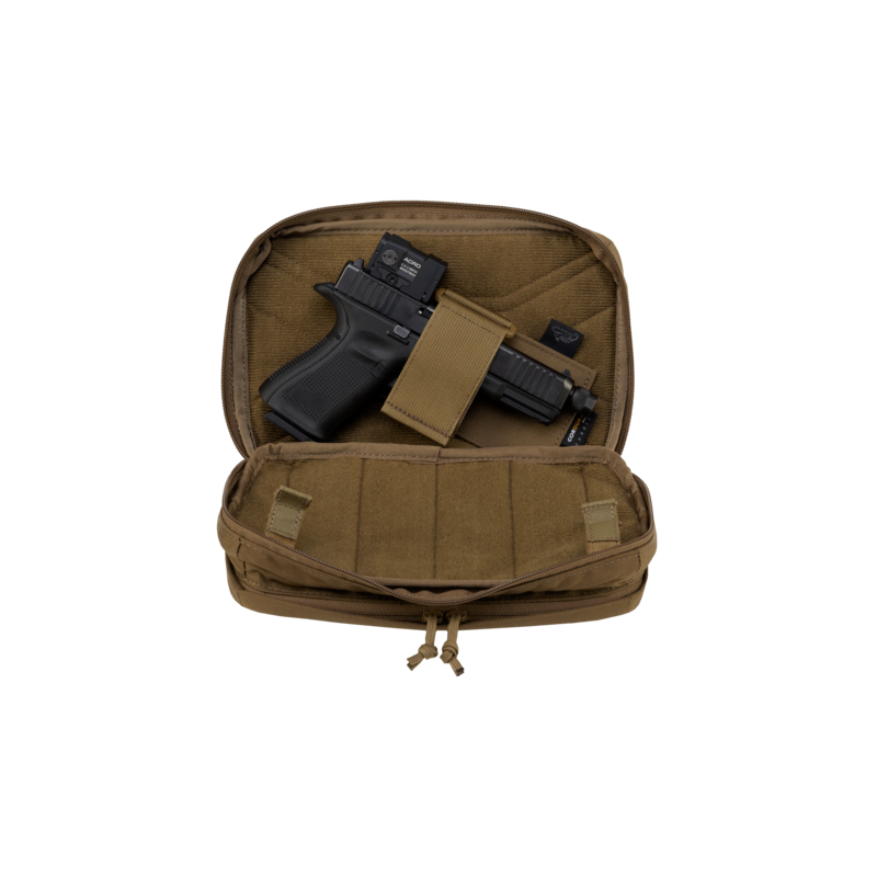 Vkladacia Insert sumka COMPETITION od Helikon-Tex v prevedení Coyote. Sumka je určená pre 2 pištoľové zásobníky (Glock, CZ, Hi-Capa, Beretta, Sig a pod.) Jedná sa o otvorenú sumku bez istiaceho lanka. Zásobník je pevne istený pomocou gumy okolo sumky. Upevnenie iba na suchý zips (nemá MOLLE väzbu).