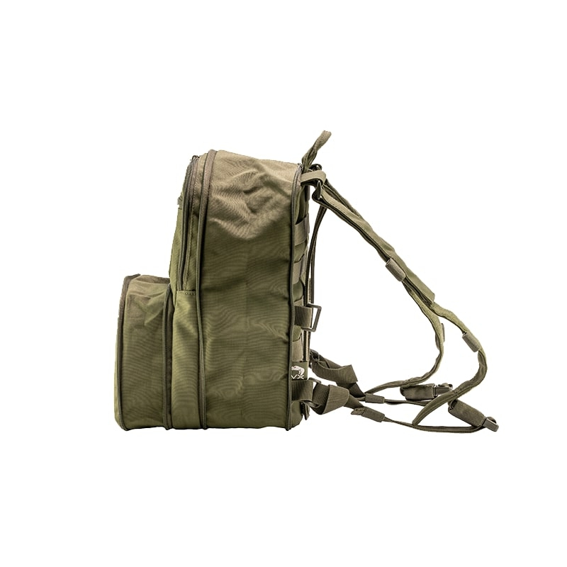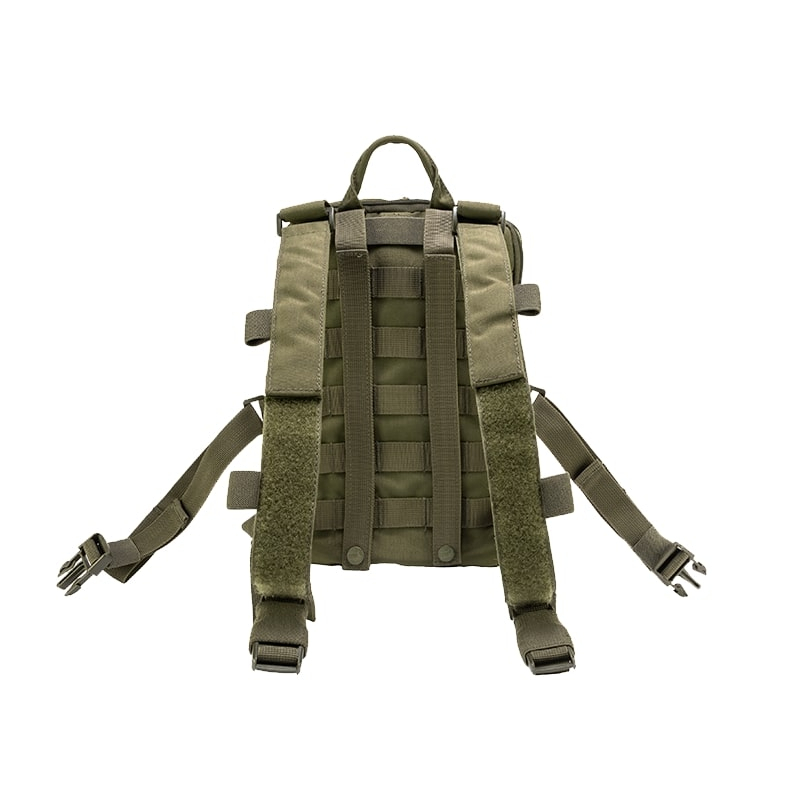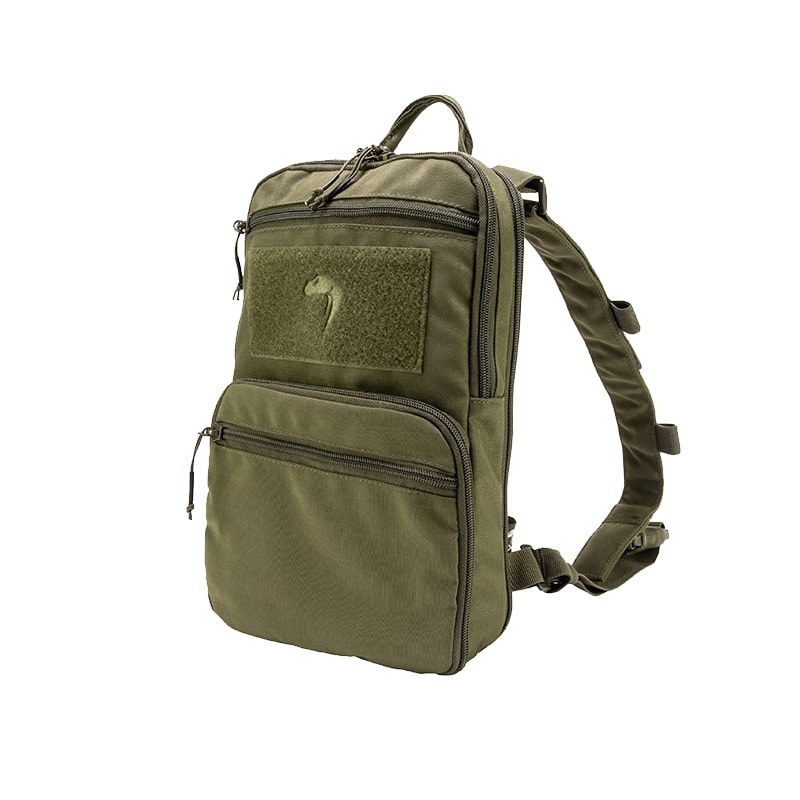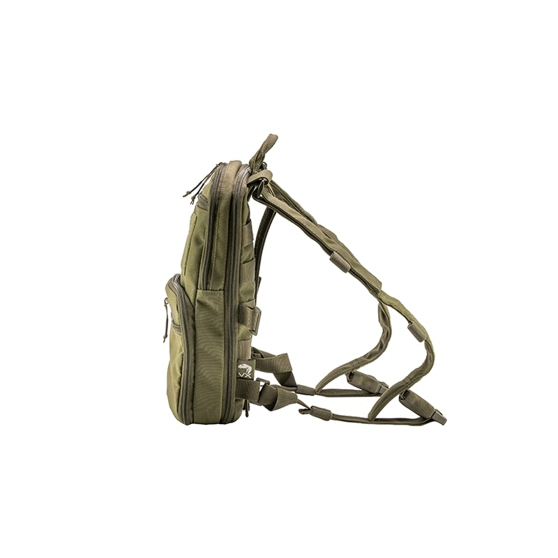 Na čelní straně batohu najdete dvě ploché kapsy na umístění menších věcí, které chcete mít rychle při ruce. Za kapsami pak jsou dvě dvě různě objemné, rozšířitelné komory. Větší z komor pohodlně pojme větrovku, zásobu jídla na den nebo až dvoulitrový hydratační vak. Menší komora je vhodná na lékárničku popřípadě prostředky na orientaci. Mezi velkou a malou kapsu najdete velký VELCRO panel na vaše nášivky Zadní strana batohu je pokryta MOLLE/PALS vazbou, která, stejně jako přiložené FASTEX přezky, slouží k připevnění k systému VX. Ramenní popruhy batohu jsou plně nastavitelné a mají své průvlaky na protažení hadičky hydratačního vaku.