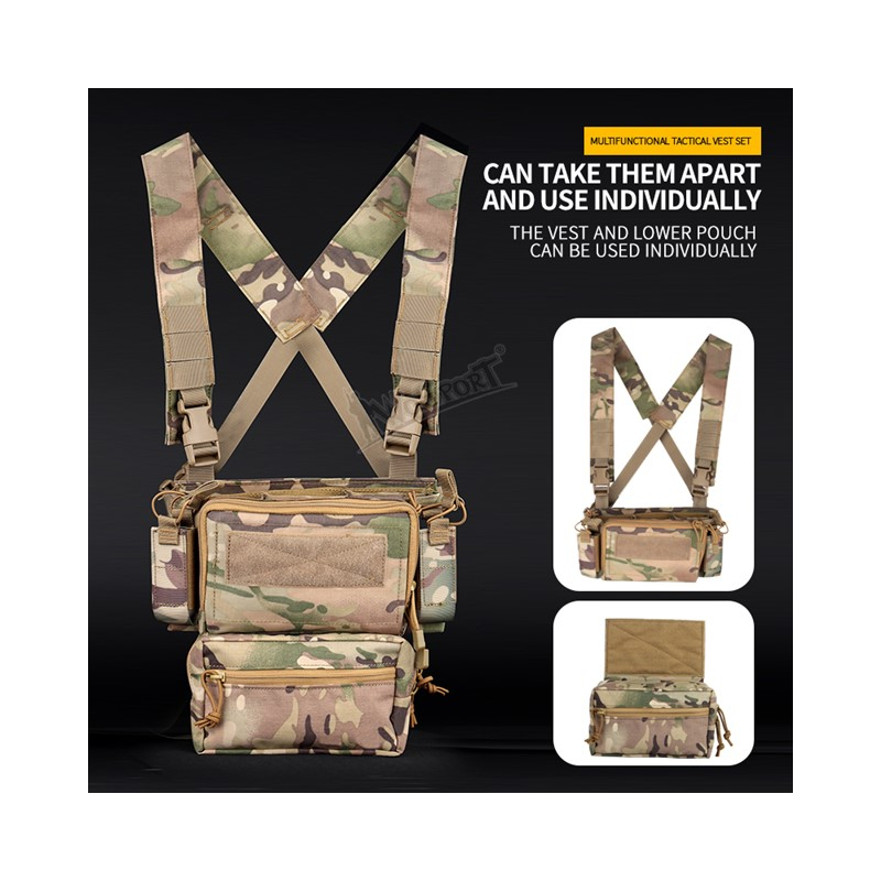 Minimalistický taktický chest rig od spoločnosti Wosport. Jeho výhodou je nepochybne takmer nulové obmedzenie pohybu vďaka nízkemu profilu, ale napriek tomu môže byť modulárny a okrem zásobníkov poňať aj ďalšie vybavenie a drobné predmety. Odnímateľná ľadvinka a niekoľko farebných variantov zaručujú, že táto hrudná súprava bude vyhovovať každému.