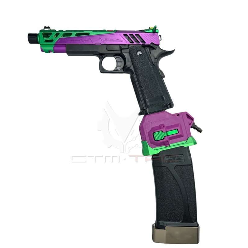 Získajte výhodu stabilného výkonu a extra kapacity zásobníka pre svoju Hi-Capu s HPA adaptérom FUKU-2 od CTM TAC, umožňujúcim HPA pohon a využitie tlačných zásobníkov M4. Precízna streľba a neprekonateľná sila budú teraz vašou silnou stránkou. Kto ovláda vzduch, prináša búrku!