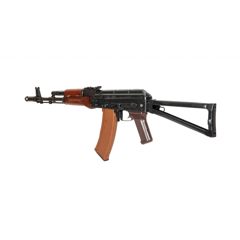 AEG puška AKS-74N (ELS-74N) zo série Essential od E&L v prevedení z oxidovanej ocele s dreveným predpažbím.