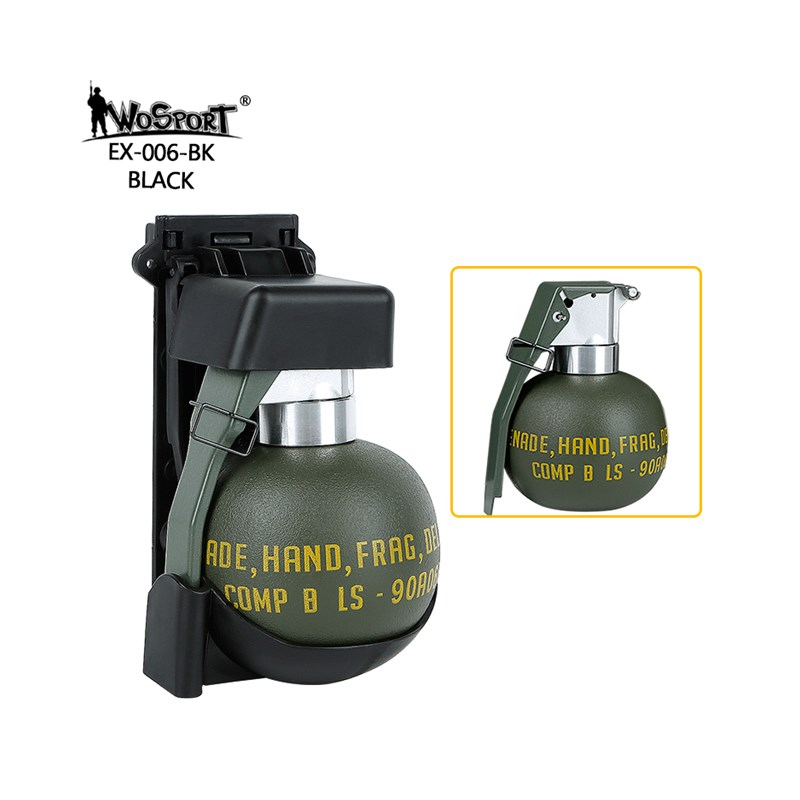 Plastový držák na granát typu M67 spolu s imitací granátu.