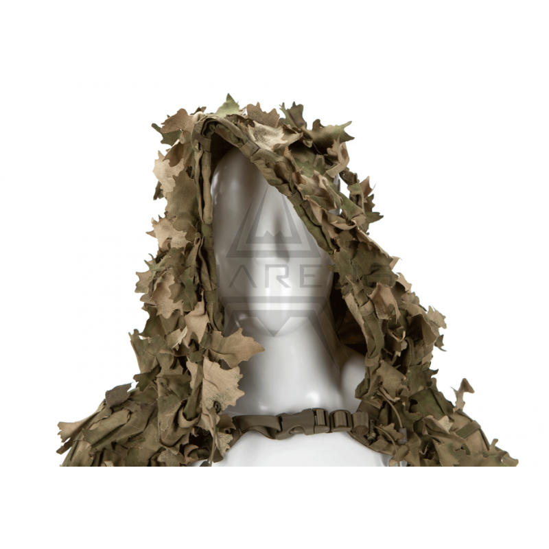 Ghillie Leaf Bolero funguje se všemi druhy vybavení, jako jsou nosiče plátů, chest rigy nebo dokonce batohy. Díky nastavovacím šňůrkám jej můžete přizpůsobit jakémukoli vybavení, které máte na sobě. Jen si ho nasaďte a buďte pro své nepřátele neviditelní.