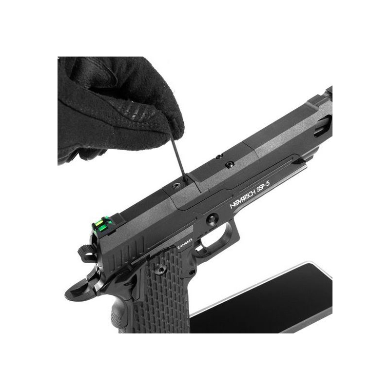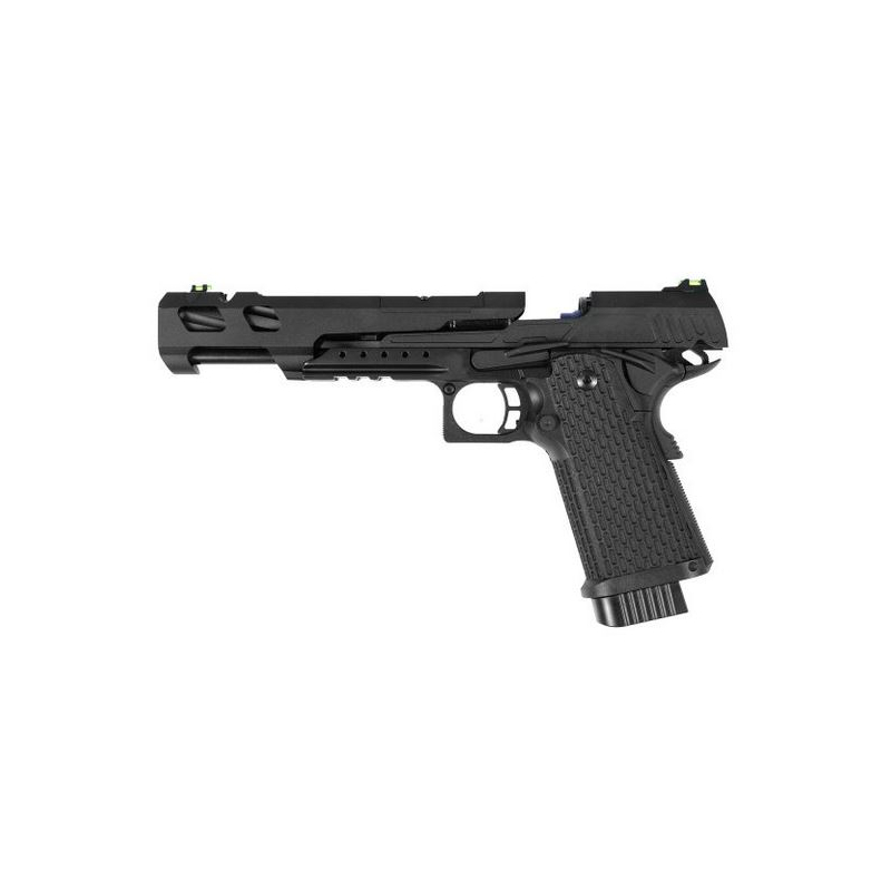 Hľadáte vyladenú plynovú pištoľ typu Hi-Capa s deleným záverom? Chcete mať zbraň s extrémnou presnosťou pri ťažšom strelive a zároveň rýchlym a spoľahlivým blowbackom? Potrebujete Hi-Capa pištoľ na súťaže, ktorá spája manévrovateľnosť, IPSC kvalitu a dlhú životnosť? Potom je Novritsch SSP5 tou správnou voľbou. SSP5 6" predstavuje najdlhšiu a najpresnejšiu verziu legendárnej Hi-Capa pištole. Vďaka 6,01 mm presnej hlavni a TDC hop-up systému ponúka stabilnú trajektóriu a istotu zásahu aj na väčšiu vzdialenosť. CNC split-slide záver zlepšuje efektivitu plynu a poskytuje silný a realistický spätný ráz. Celooceľový spúšťový mechanizmus zaručuje odolnosť a plynulý chod aj pri intenzívnom používaní. Pevná predná časť záveru umožňuje montáž kolimátora, čím sa z pištole stáva dokonalý nástroj pre dynamickú streľbu aj IPSC disciplíny. Súťažný rozmer 6" uľahčuje mierenie bez kompromisov v ovládateľnosti.
