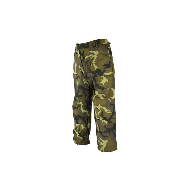 Dětské kalhoty v českém maskování vz.95. Správná volba pro správného českého vojáka. 2 kapsy na ruce 2 prostorné stehenní kapsy kryté légou se suchým zipem zapínání na knoflík a poklepec na zip v pase všitá guma poutka pro opasek Materiál: odolný originál army /50% polyester, 50% bavlna/ rip-stop úprava proti roztžení.