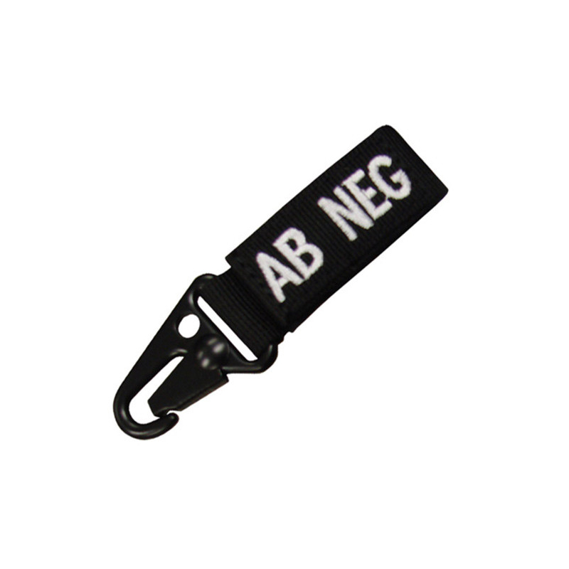 Přívěšek na klíče s označením krevní skupiny a RH faktoru nositele.