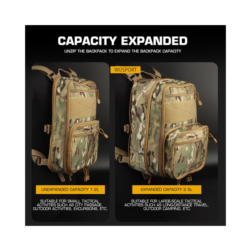 Doopravdy vďaka úzkej konštrukcii a možnosti rozšírenia objemu pomocou integrovaných zipsov. Hodí sa na Molle pre pripojenie, dá sa pripojiť k chest rigu namiesto ramenných popruhov a je ideálny aj na bežné nosenie v meste.