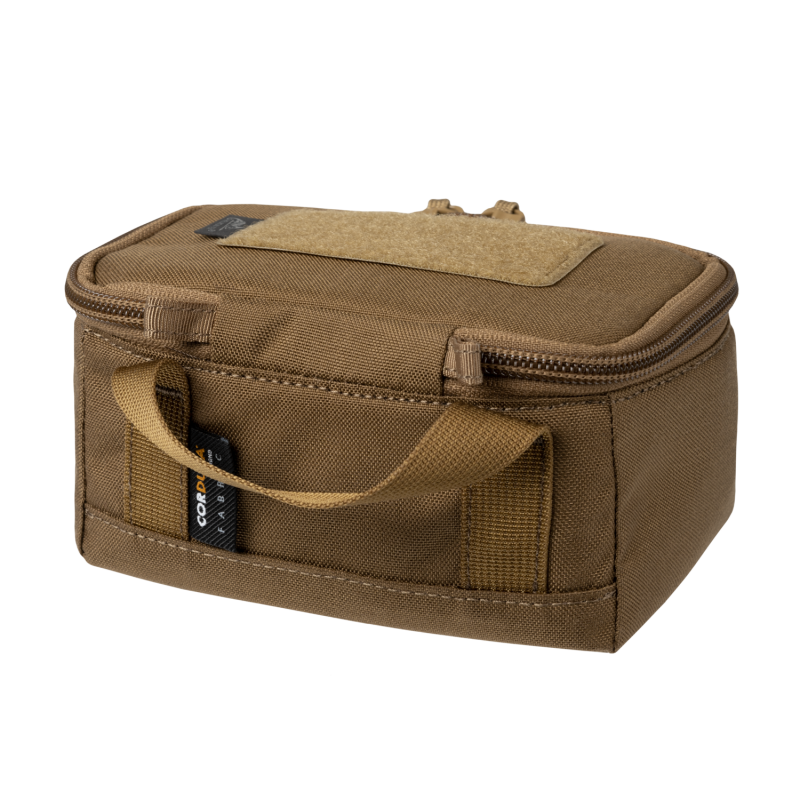 AMMO BOX je spevnené puzdro určené na prenášanie munície. Je vyrobené z veľmi odolného 500D Cordura nylonu a vďaka malým rozmerom sa pohodlne zmestí do transportných tašiek spolu s ďalším vybavením na strelnicu (napr. RANGE od Helikon-Tex).