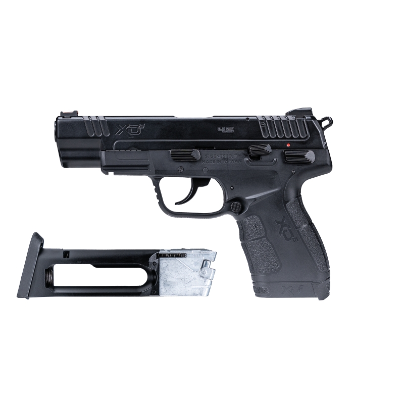 Springfield Armory XD-E je realistická CO2 replika ikonickej pištole, ktorá spája autentický vzhľad, kvalitné spracovanie a výborný strelecký zážitok. Vďaka dvojčinnému/jednočinnému (Double Action/Single Action) spúšťovému systému ponúka variabilitu streľby pre rekreačné využitie aj tréning manipulácie a streľby so zbraňou. Pištoľ dosahuje rýchlosť až 100 m/s (330 FPS), čo je dostatočný výkon pre záložnú zbraň.