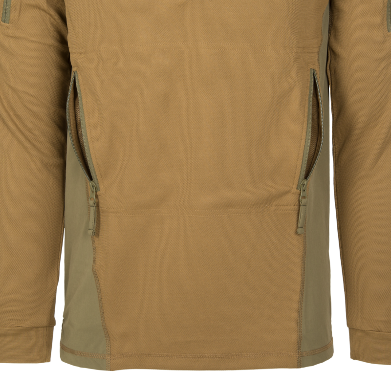 Elastické bočné vložky z patentovaného materiálu VersaStretch® umožňujú voľnosť pohybu. Kapucňa a oblasť podpazušia sú opatrené sieťovinou pre lepší odvod tepla. Lakte sú zosilnené a vybavené vreckami na chrániče. Mikina disponuje tromi praktickými vreckami. Priestranným klokaním vreckom na bruchu a dvomi plochými vreckami na ramenách, ktoré sú doplnené VELCRO panelmi pre vaše nášivky. Pod stredovým zipsom je umiestnené pútko na zavesenie okuliarov.