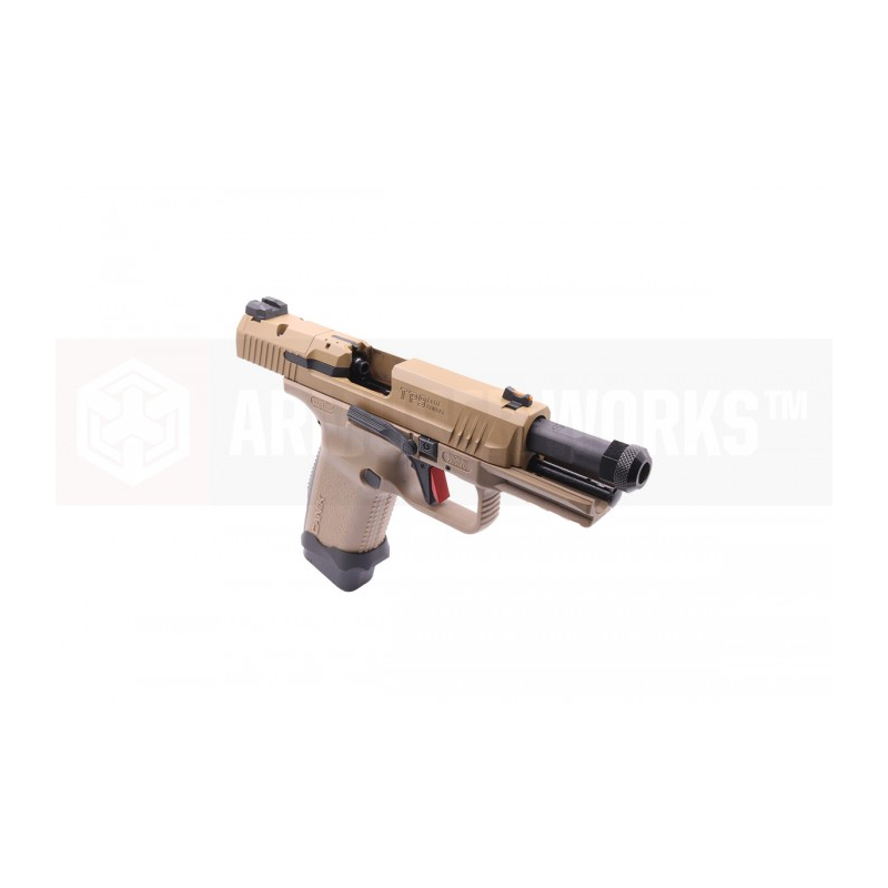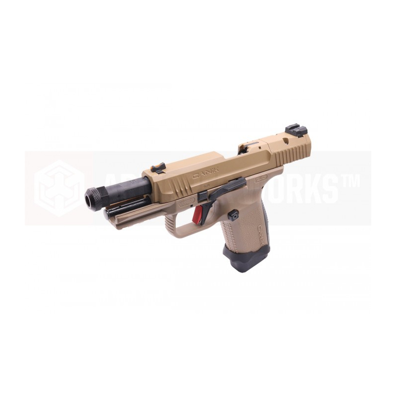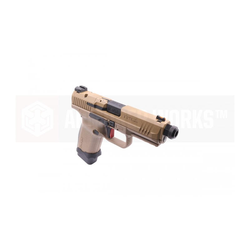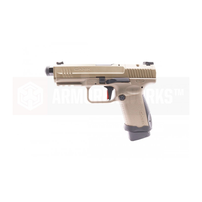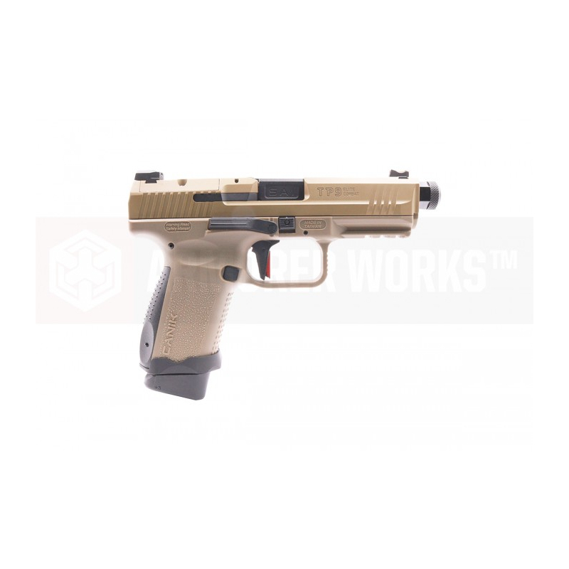 Dlouhodobě očekávaný projekt spolupráce mezi Cybergun a CANiK je konečně tady! TP9 Elite Combat je všestranná kompaktní pistole s perfektními díly, navrženými ve spolupráci se Salient Arms International, včetně rýhované a nitridem potažené vnější hlavně, chrániče závitu, sady mířidel a magwellu.