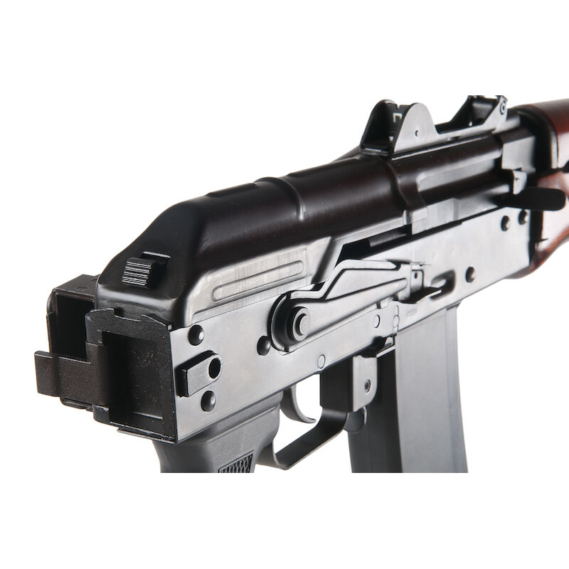 Jestli chcete vlastnit úžasnou repliku AKS74U tak tímto kouskem od firmy GHK rozhodně neuděláte chybu. Je vyrobena z oceli a předpažbí je vyrobeno z pravého dřeva! Díky funkci blowback se chová tato replika jako její skutečná předloha ze známé rodiny zbraní AK.
