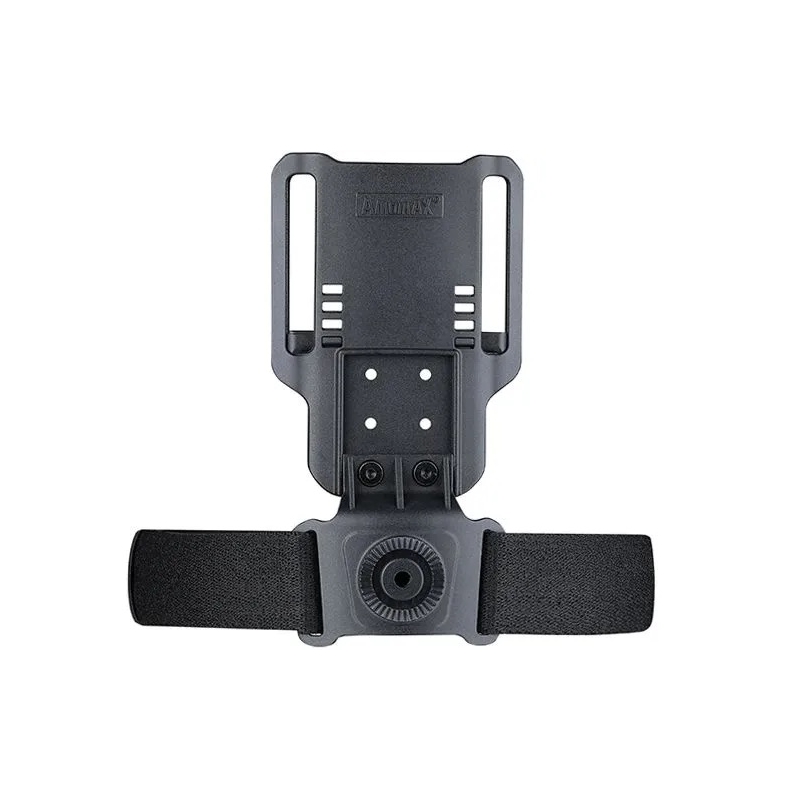 Platforma je kompatibilná so všetkými pištoľovými puzdrami a zásobníkovými sumkami Amomax. Vďaka nastaviteľnému vnútornému posuvníku sa dá prispôsobiť pre opasky so šírkou 40 mm až 60 mm (pri opasku 60 mm je nutné posuvník úplne vybrať). Súčasťou je aj protišmykový pás okolo stehna, ktorý pevne uchytí celú platformu aj s puzdrom k telu, takže zostane stabilná aj pri behu alebo inom dynamickom pohybe. Pevná konštrukcia z odolného high-tech polyméru zaisťuje maximálnu životnosť.