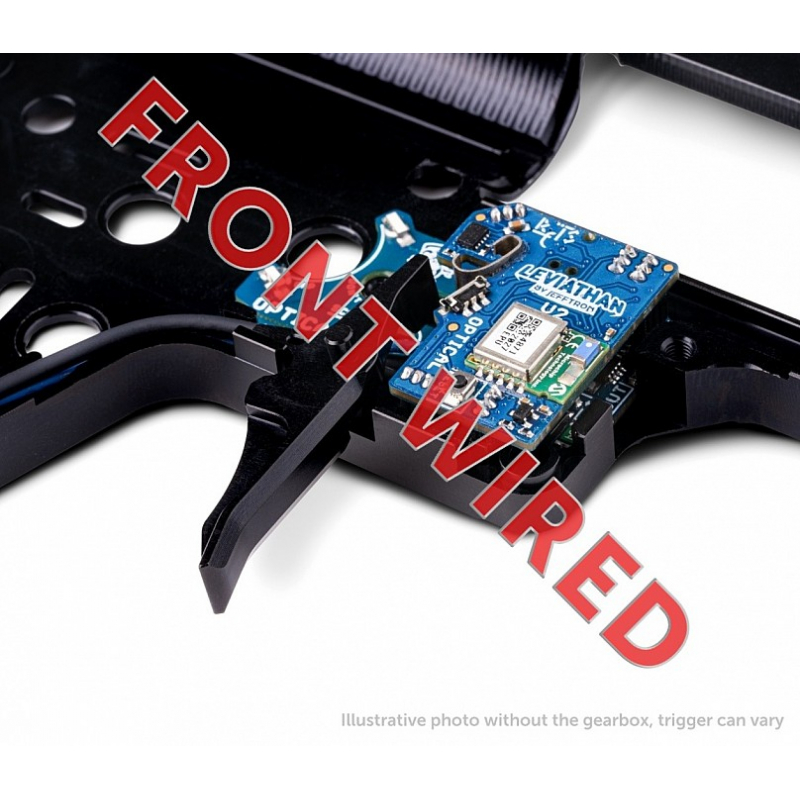 Leviathan V2 Optical je elektronická ETU jednotka s Bluetooth, určená na inštaláciu do mechaboxu V2 a V2.5 podľa TM štandardu. Vďaka optickým senzorom pre detekciu výstrelu a prepínača režimu streľby a extrémne krátkemu spínaču (iba 0,13 mm) umožňuje nastavenie realistického hair trigger módu. Systém Real Feel Trigger System (RFTS) so pružinou simuluje odpor reálnej spúšte a poskytuje reset po výstrele. Cez mobilnú aplikáciu JeffTron môžete v reálnom čase nastavovať režimy streľby, kadenciu, aktívnu brzdu, prednatiahnutie piestu, virtuálny zásobník a množstvo ďalších funkcií. Vstupný aj výstupný port podporuje pripojenie externých doplnkov ako svietidlá, elektrické zásobníky alebo senzor prázdneho zásobníka. Jednotka je chránená konformným lakom. Je kompatibilná s vysokokadečnými zostavami vrátane DSG kolies a je plne pripravená na Brushless motory ako Warhead. Všetky zmeny v aplikácii sa okamžite ukladajú do pamäte jednotky. K jednotke navyše dostanete aj CNC hliníkovú spúšť od Retro Arms s nastavovacím skrutkou a štýlovým dizajnom.