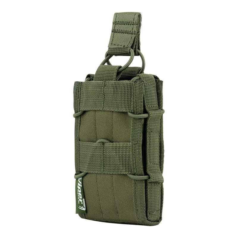 Pouzdro, do kterého díky jeho variabilitě pasují různé druhy zásobníků. MOLLE popruhy, elastické (bungee) popruhy. Materiál 600D Cordura. Rozměry: cca 12 x 8 x 3 cm.
