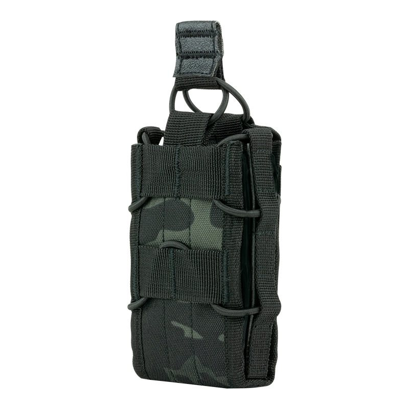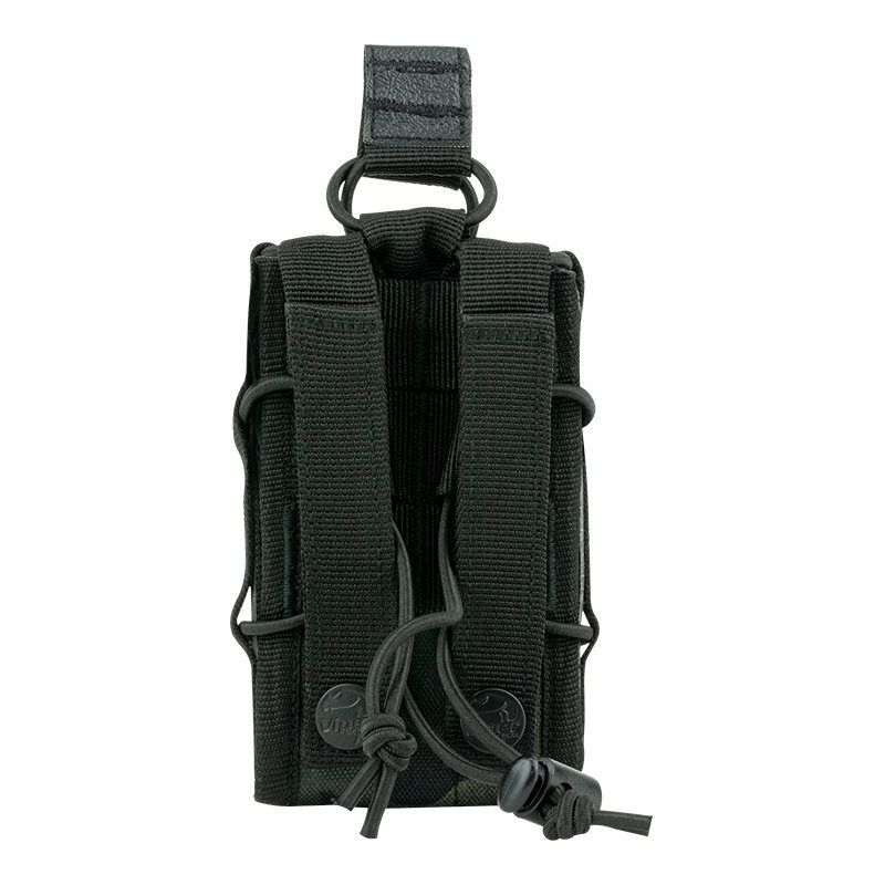 Pouzdro, do kterého díky jeho variabilitě pasují různé druhy zásobníků. MOLLE popruhy, elastické (bungee) popruhy. Materiál 600D Cordura. Rozměry: cca 12 x 8 x 3 cm.