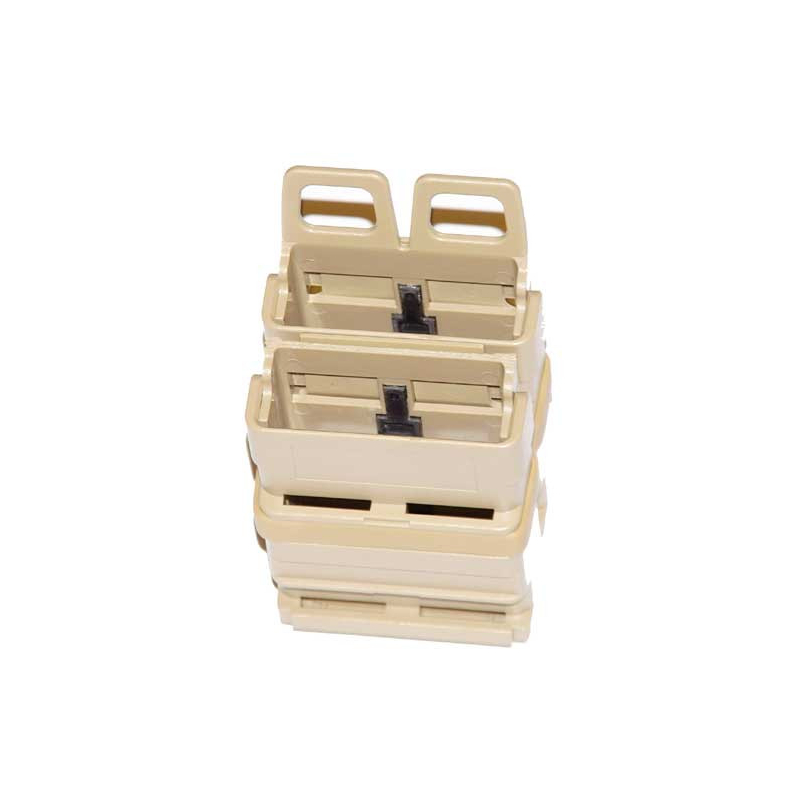 Táto plastová sumka od FMA je určená pre zásobníky kalibru 7.62 (AK, SCAR-H, SR-25 a pod.) a ich airsoftové varianty. Zásobník je v sumke typu FastMag držaný len sevretím plastu pomocou dvoch gumených pásikov okolo celej sumky, čo umožňuje rýchle vybratie aj vloženie bez potreby ďalšieho istenia zásobníkov.