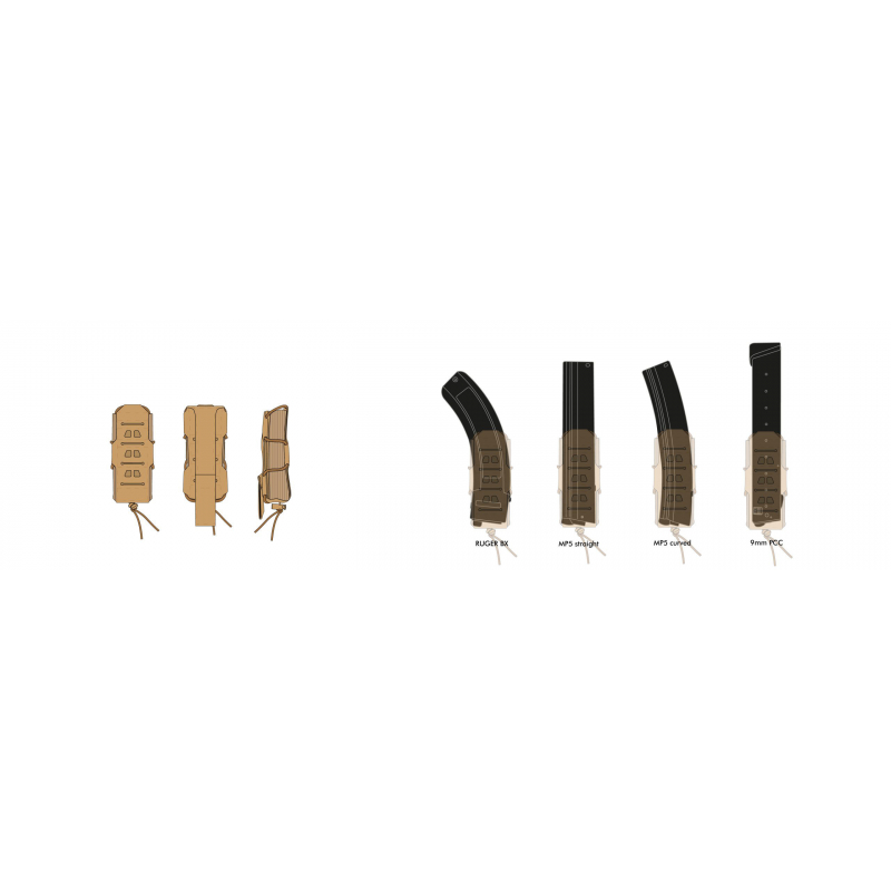 Hľadáte spoľahlivú a univerzálnu sumku pre rôzne SMG / PDW / PCC zásobníky? Potrebujete, aby zásobníky držali pevne a zároveň boli rýchlo dostupné? Táto elastická sumka od Novritsch je presne to, čo hľadáte. Perfektne pasuje na SSR9 a ARP9 zásobníky, no je tiež kompatibilná s MP5, MP7, GP STRIBOG a ďalšími. Vďaka nastaviteľnému svoru a protišmykovému vnútornému povrchu zásobníky pri pohybe nevypadávajú, ale pri prebíjaní sú okamžite po ruke. Laser-Cut MOLLE väzba umožňuje pripevniť ďalšie sumky na prednú stranu, takže jednoducho rozšírite svoju výbavu bez zbytočného zväčšovania profilu.